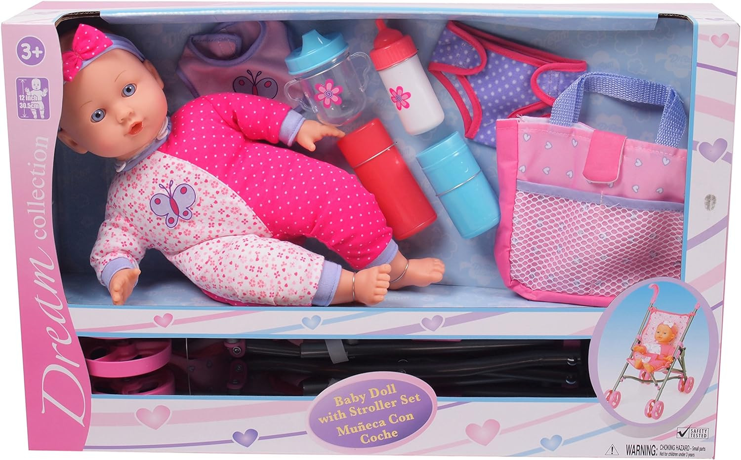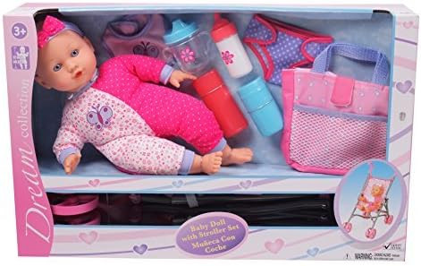 DREAM COLLECTION Gi-Go: 14' Baby Doll with Stroller Set, Accessories Include, Bib, Diaper, Sippy Cup, Bottle, Carry Case and More, Realistic Facial Features, For Ages 3 and up