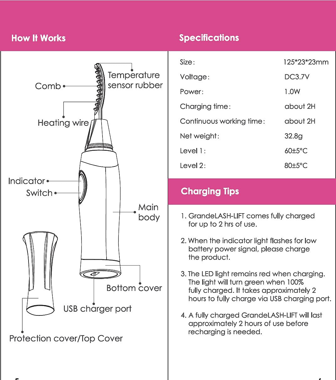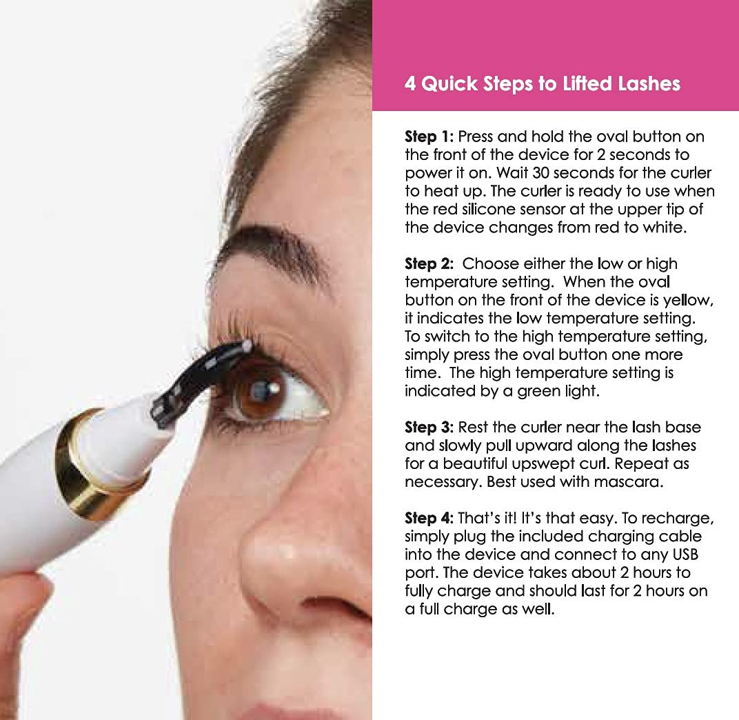 Grande Cosmetics LASH-LIFT Heated Lash Curler, Rechargeable and Travel Friendly, 2 Heat Settings, White