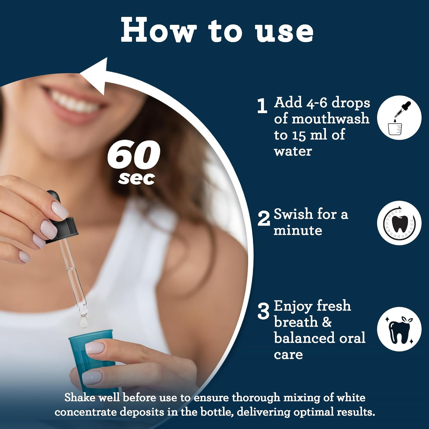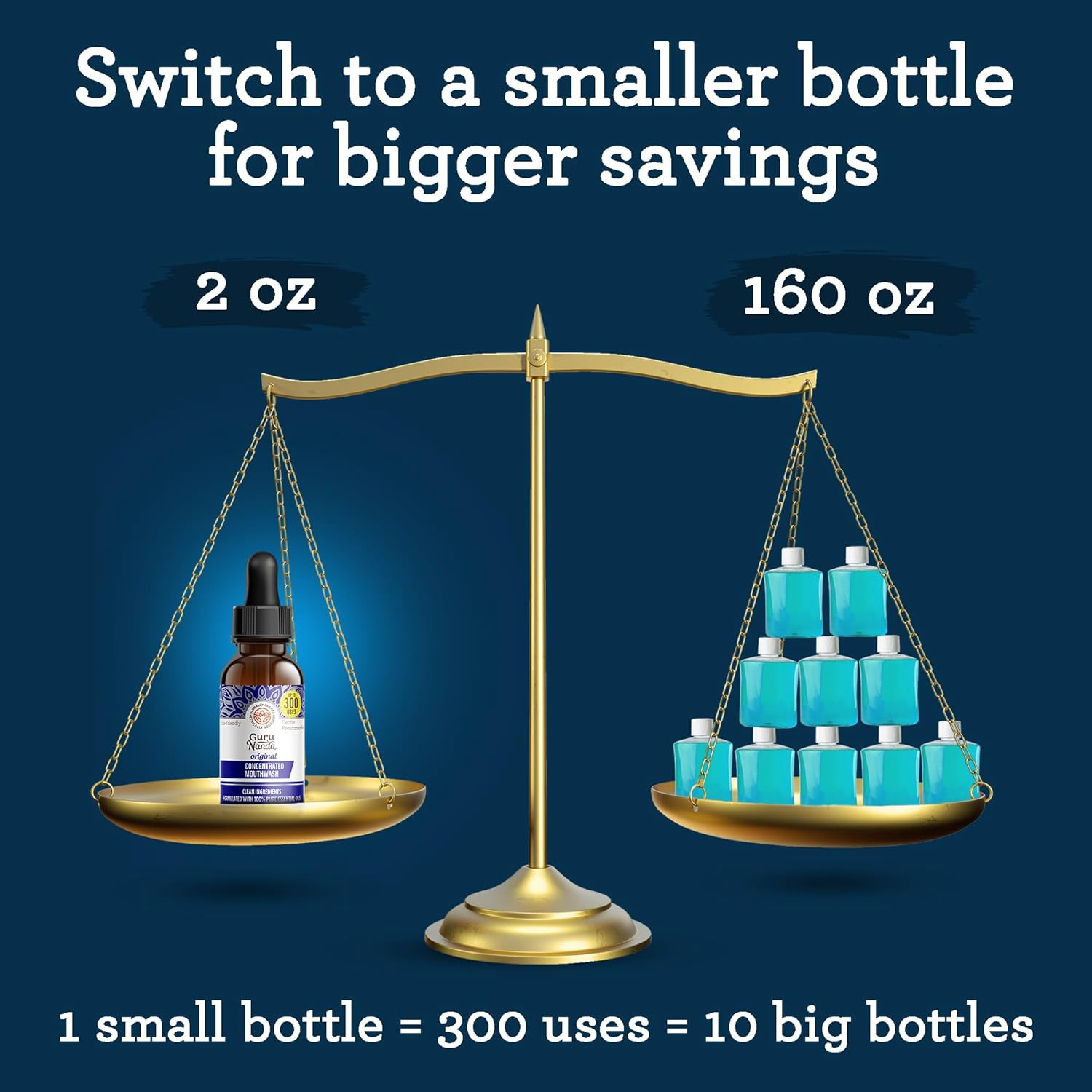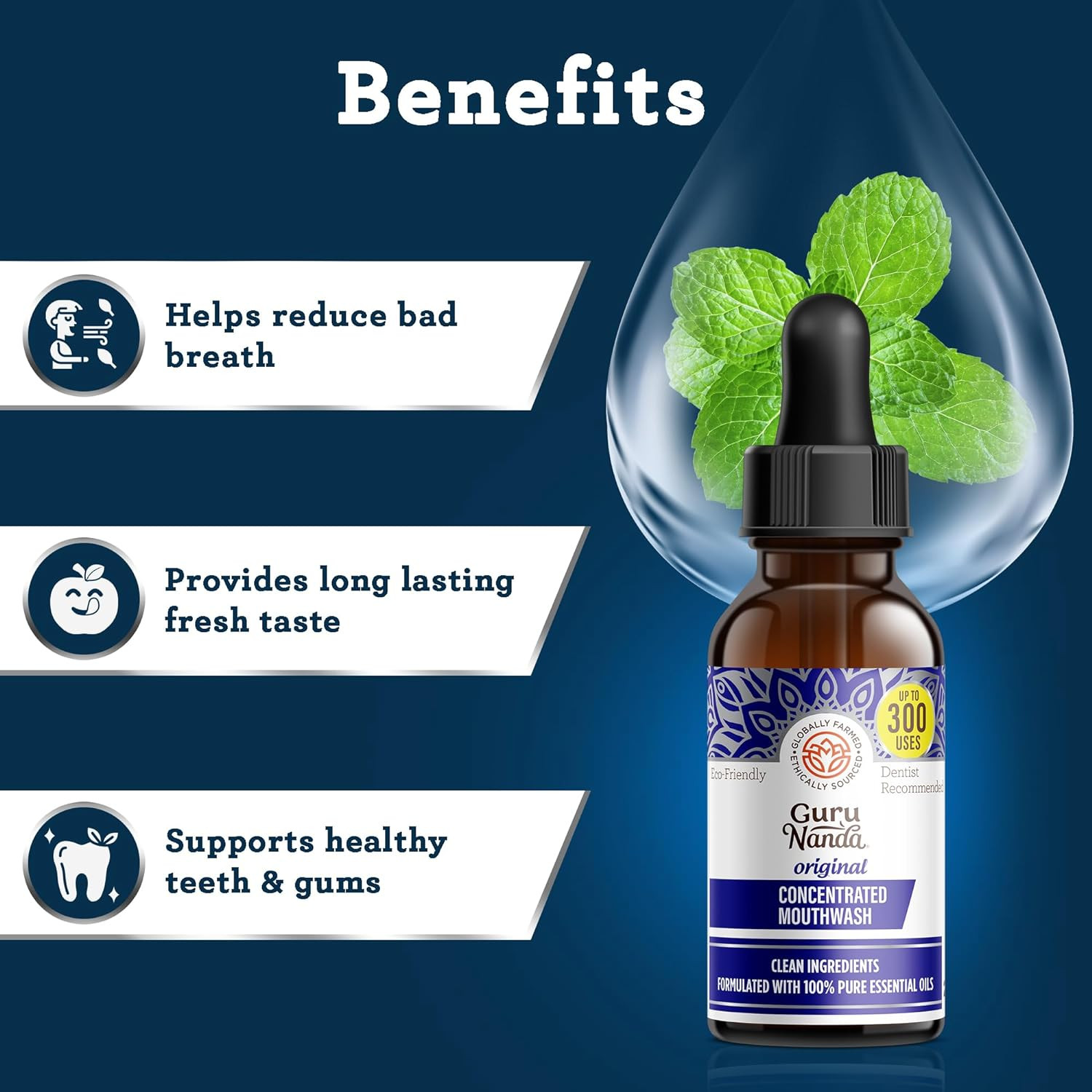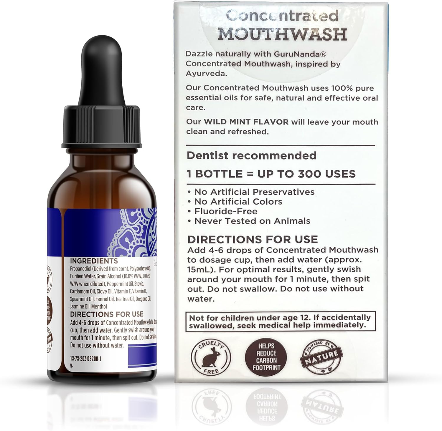 GuruNanda Concentrated Mouthwash (2 fl oz), Fluoride-Free, Mint Mouthwash with Natural Essential Oils, Supports 300 Rinses, Aids in Fresh Breath