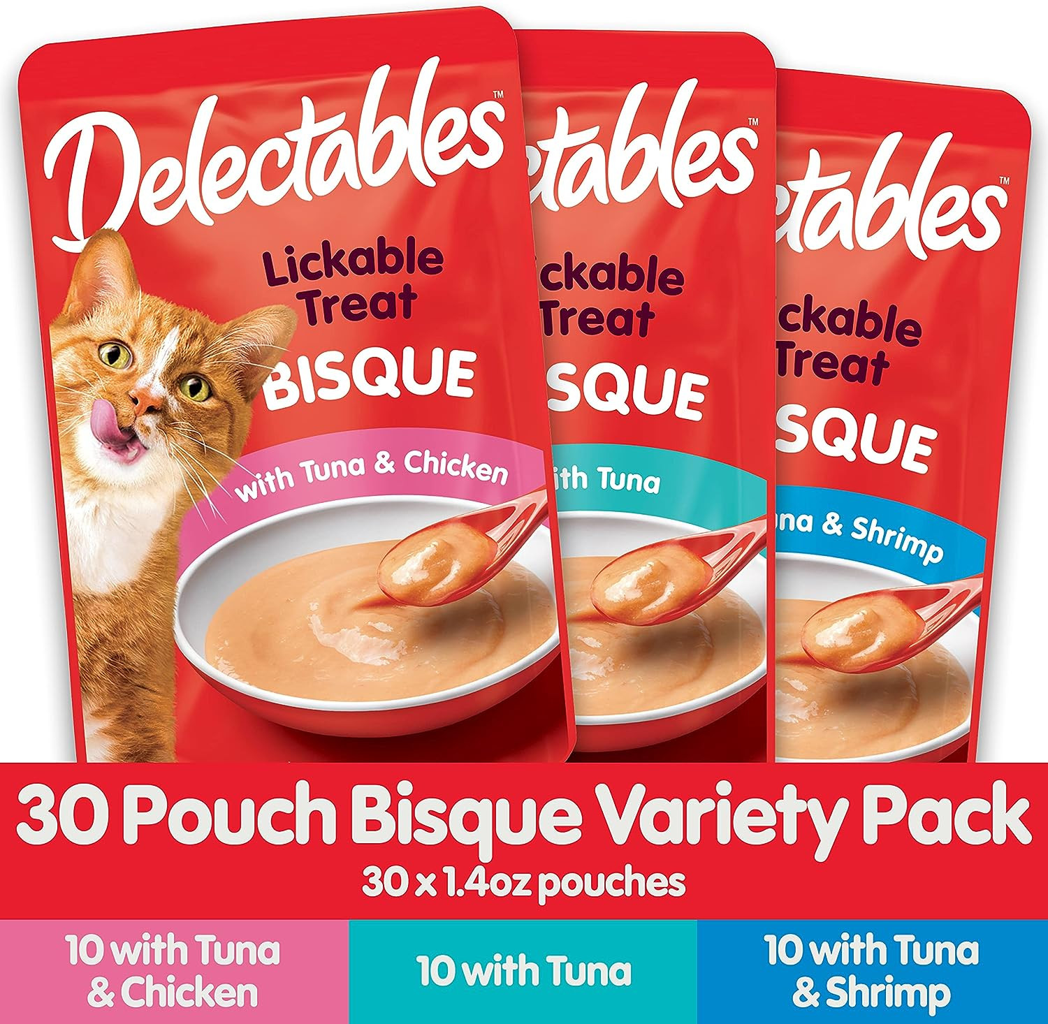 Hartz Delectables Bisque Variety Pack Lickable Cat Treat, 30 Count (Pack of 1)