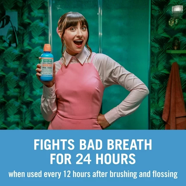 Bad breath is nothing to be ashamed of...everyone gets it! ADA accepted TheraBreath Fresh Breath Mouthwash has been fighting bad breath for over 25 years. When used as directed, it's clinically shown to fight bad breath for 24 hours when used every 12 hours after brushing and flossing. This alcohol-free mouthwash doesn't burn or irritate, and the oxygenating compound that fights bad breath starts working instantly. TheraBreath Fresh Breath Mouthwash has no artificial dyes and is certified kosher, vegan, and gluten-free. We’re so confident in the effectiveness of TheraBreath Oral Rinses that we back them up with our 100% guarantee. If you haven’t seen improvement in your breath, contact us within 30 days of purchase for a full refund. TheraBreath: It's a better mouthwash, satisfaction 100% guaranteed!