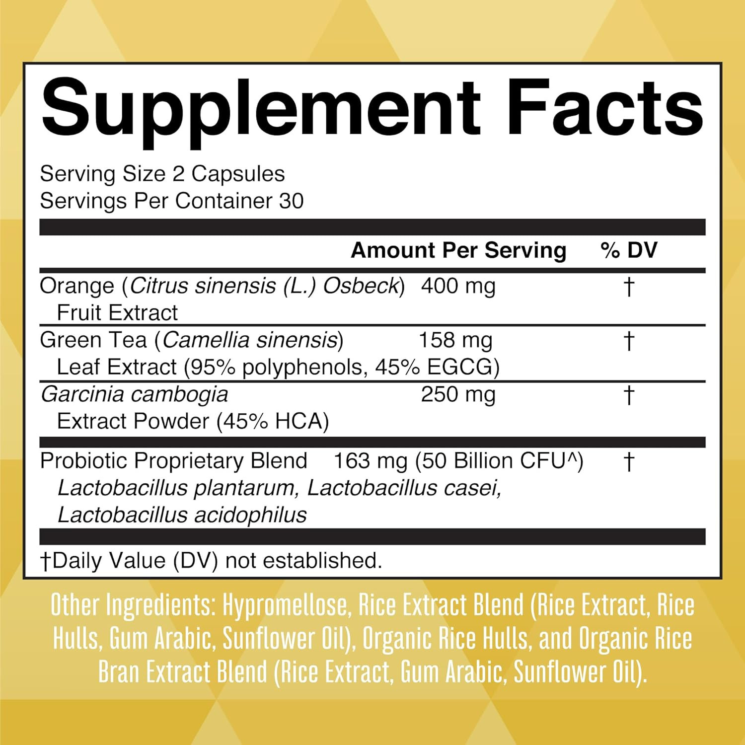 | Special Ingredients | Probiotic with Garcinia Cambogia and Green Tea Extract |