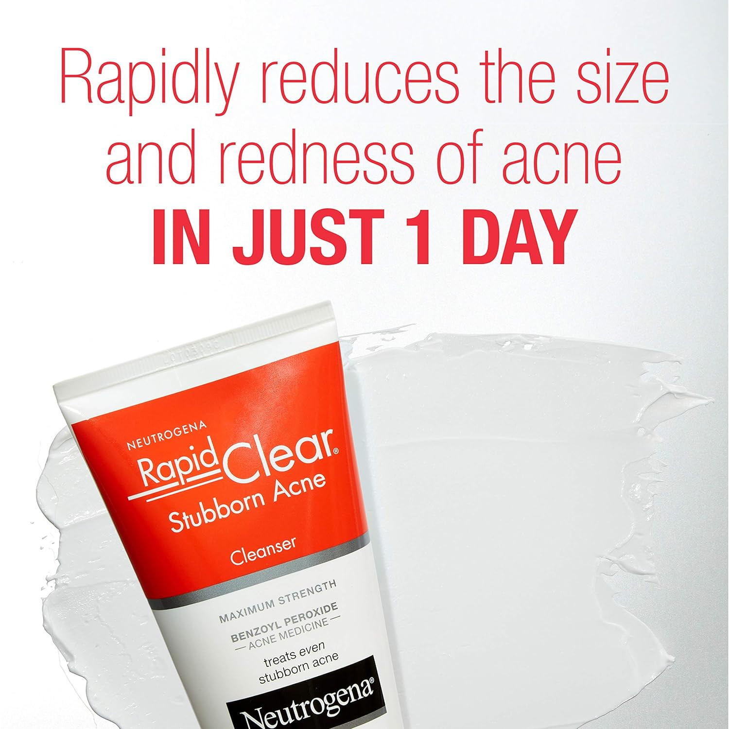 Neutrogena Rapid Clear Stubborn Acne Face Wash with 10% Benzoyl Peroxide Acne Treatment Medicine, Daily Facial Cleanser to Reduce Size and Redness of Acne, Benzoyl Peroxide Acne Face Wash, 5 Fl Oz