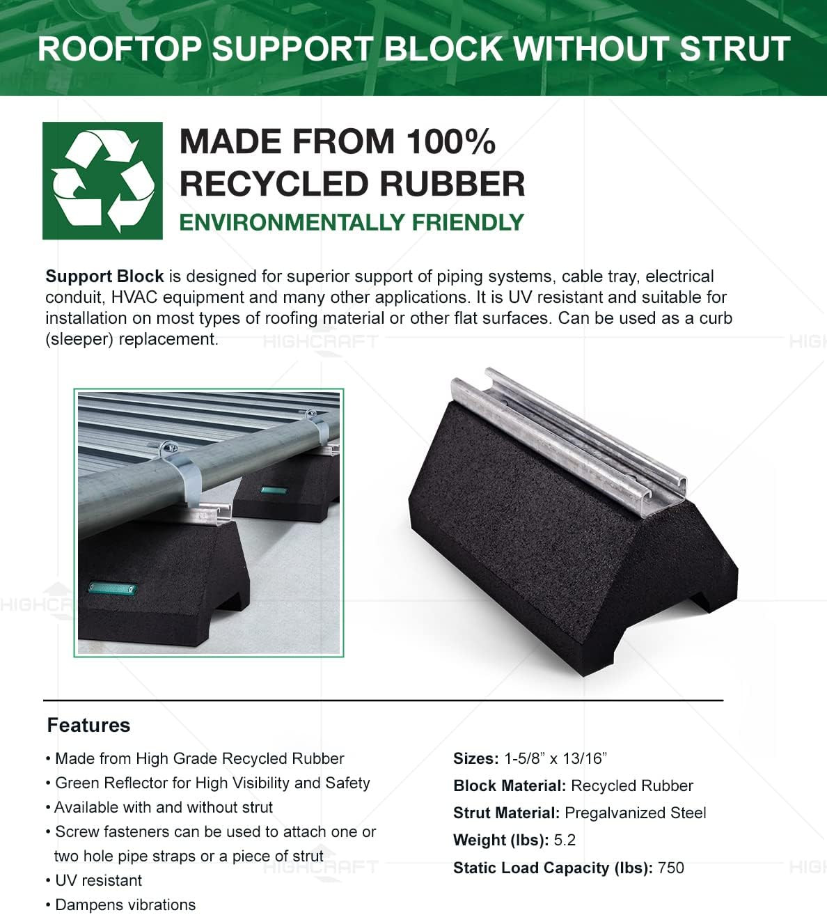 STC-10T Rooftop Pipe Support Block with Galvanized Steel Strut- Sleeper Curb Replacement- Solid Conduit Standoff Cradle- 750 lb.capacity- 5-3/4 x 9-3/4 in, High Grade Recycled Rubber, Black