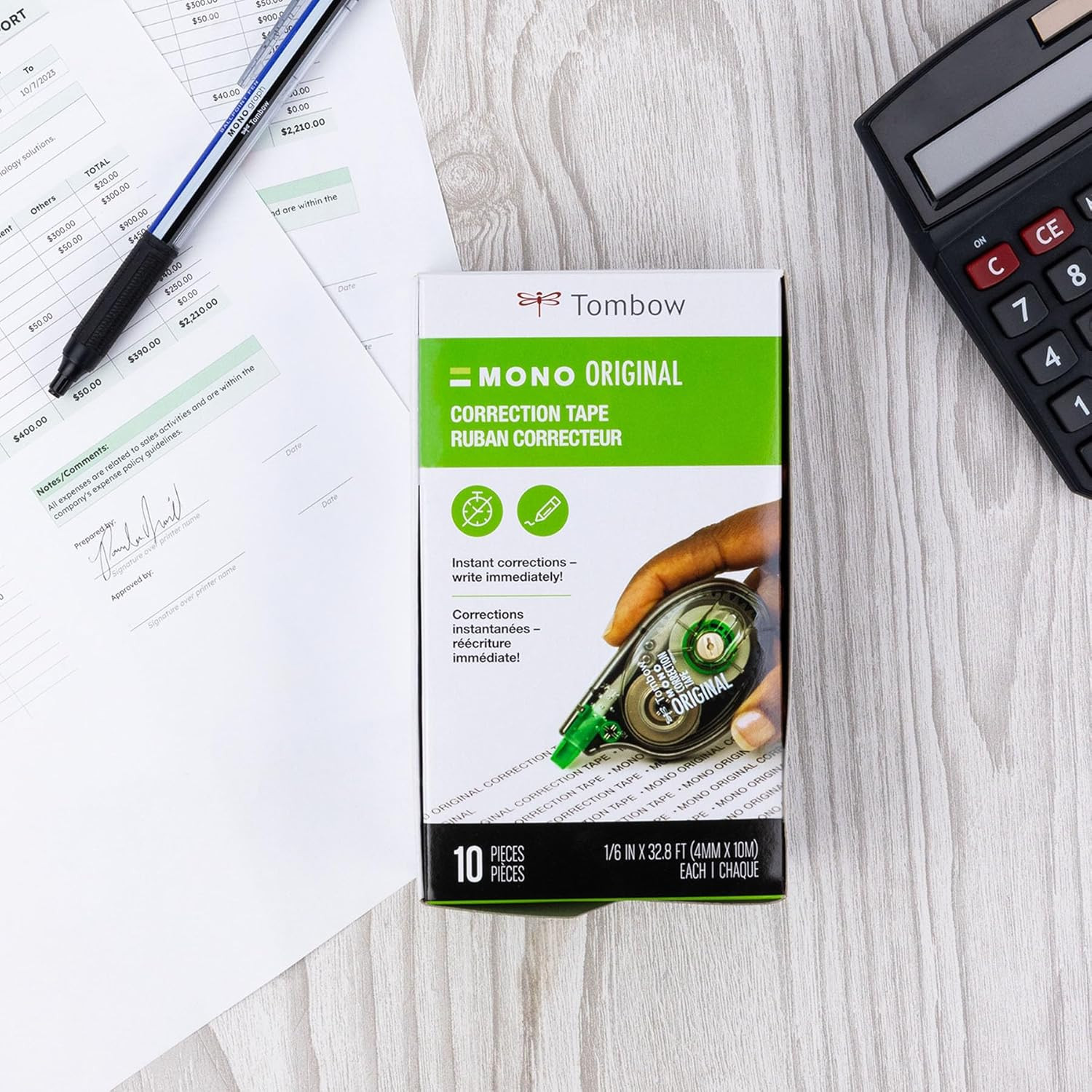 Tombow 68720 MONO Original Correction Tape, 10-Pack. Easy To Use Applicator for Instant Corrections, White, 10 Count (Pack of 1)