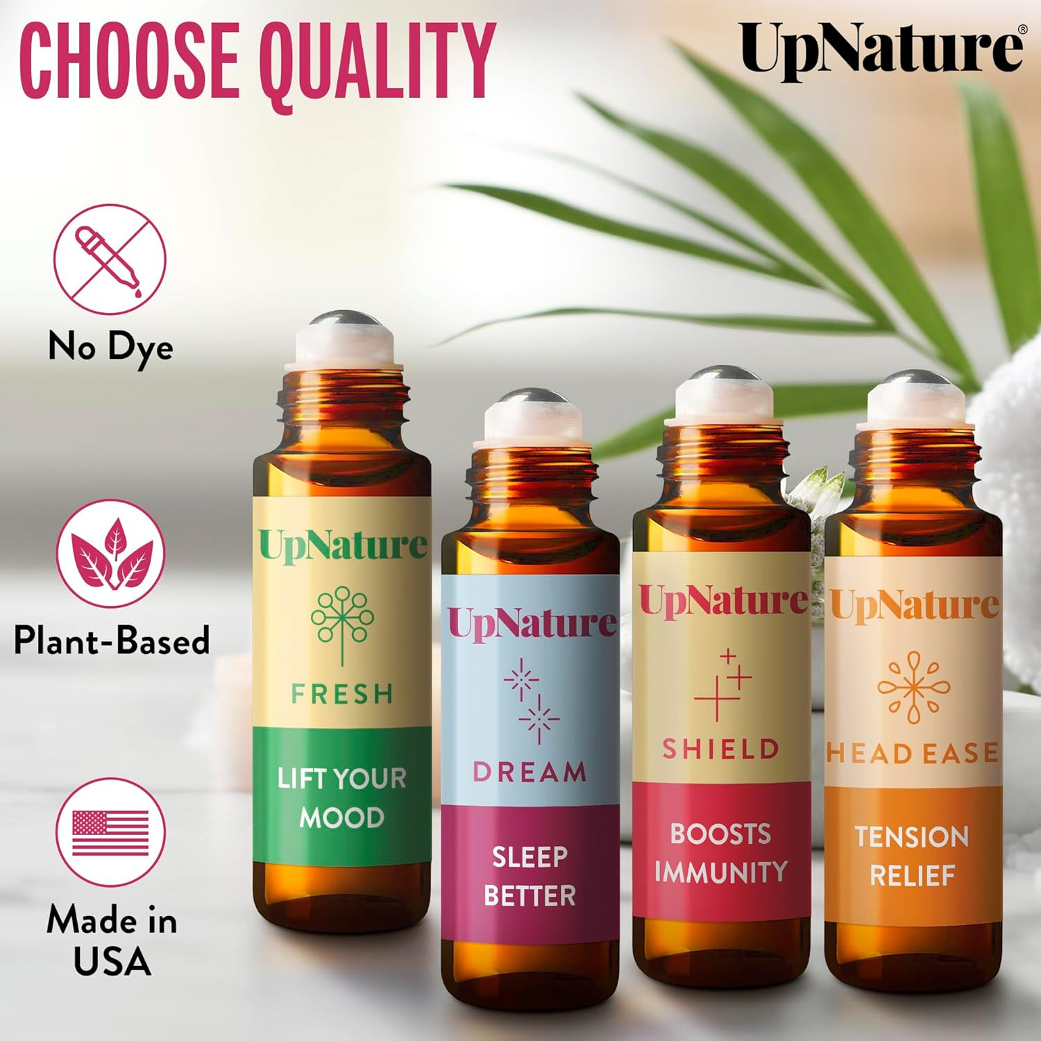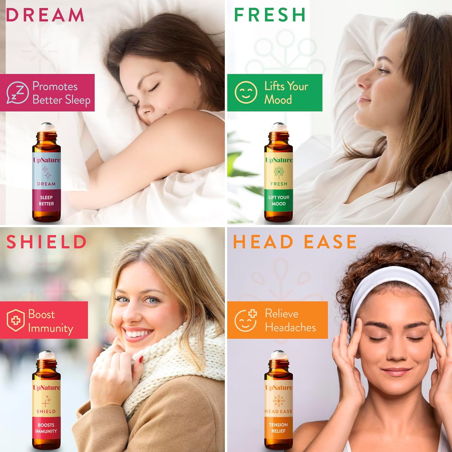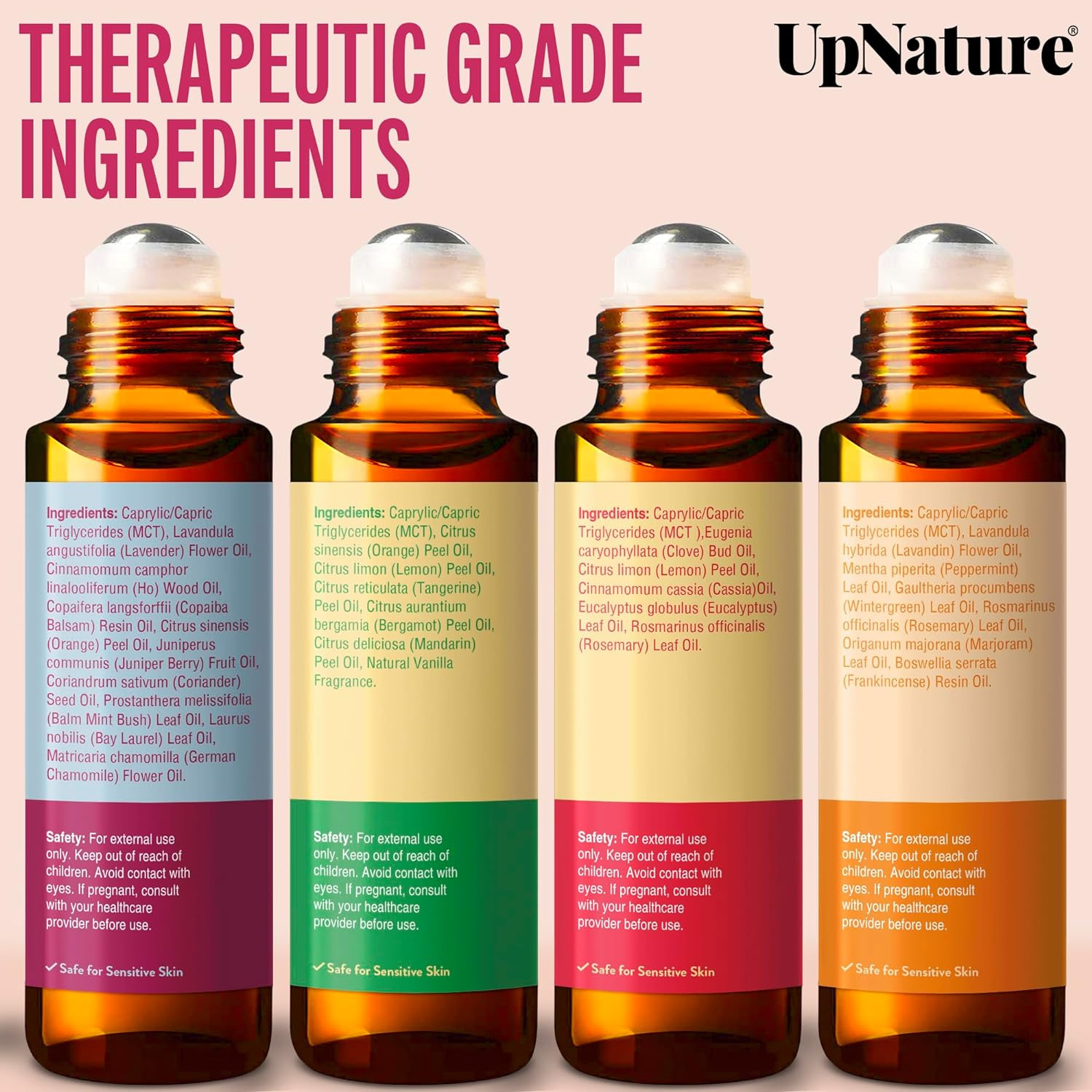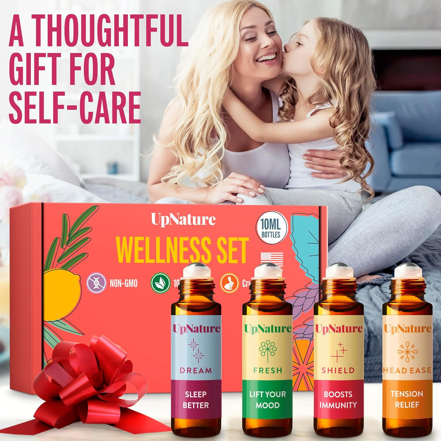 UpNature Wellness Essential Oil Roll On Gift Set - Relaxation Gifts for Women/Men - Headache Relief, Germ Fighter, Mood Booster & Better Sleep - Therapeutic Grade - Great Stocking Stuffer