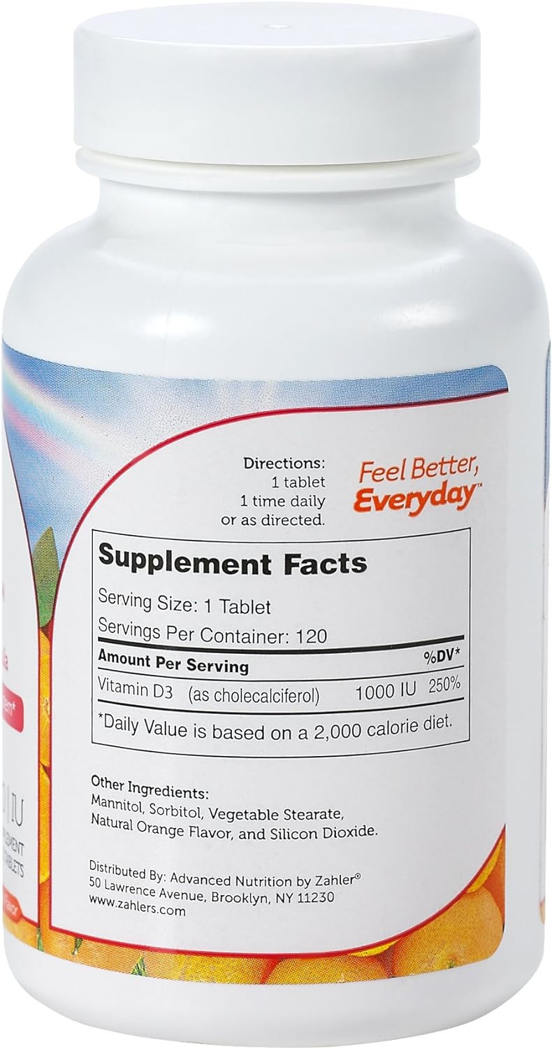 Zahler Junior D3 Chewable 1000IU, Kids Vitamin D, Great Tasting Chewable Vitamin D for Kids, Optimal Vitamin D3 1000 IU for Children,Certified Kosher, 240 Chewable Tablets