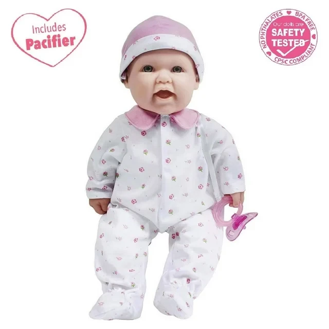 JC Toys La Baby Soft 16" Caucasian Baby Doll, with Pink OutfitExquisite details bring La Baby to lifeThe pacifier is attached to the outfit; with no buttons or zippers on clothingSafety tested, and approved for children 12 months old and upNational parenting center seal of approvalMachine washableLa Baby is BPA and phthalate-free