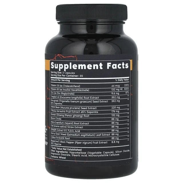 This unique formula for men features a wide range of antioxidant-rich natural extracts including tongkat ali, velvet bean, tribulus terrestris, Korean ginseng, oat straw, and shilajith.*