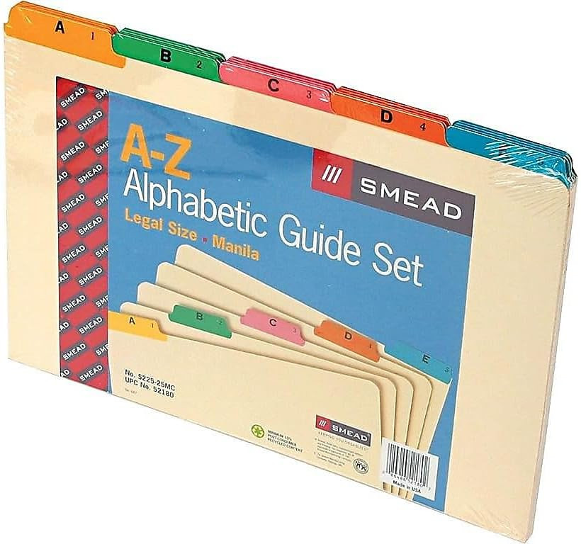 Smead 52180 Recycled Top Tab File Guides, Alpha, 1/5 Tab, Manila/Color, Legal (Set of 25)